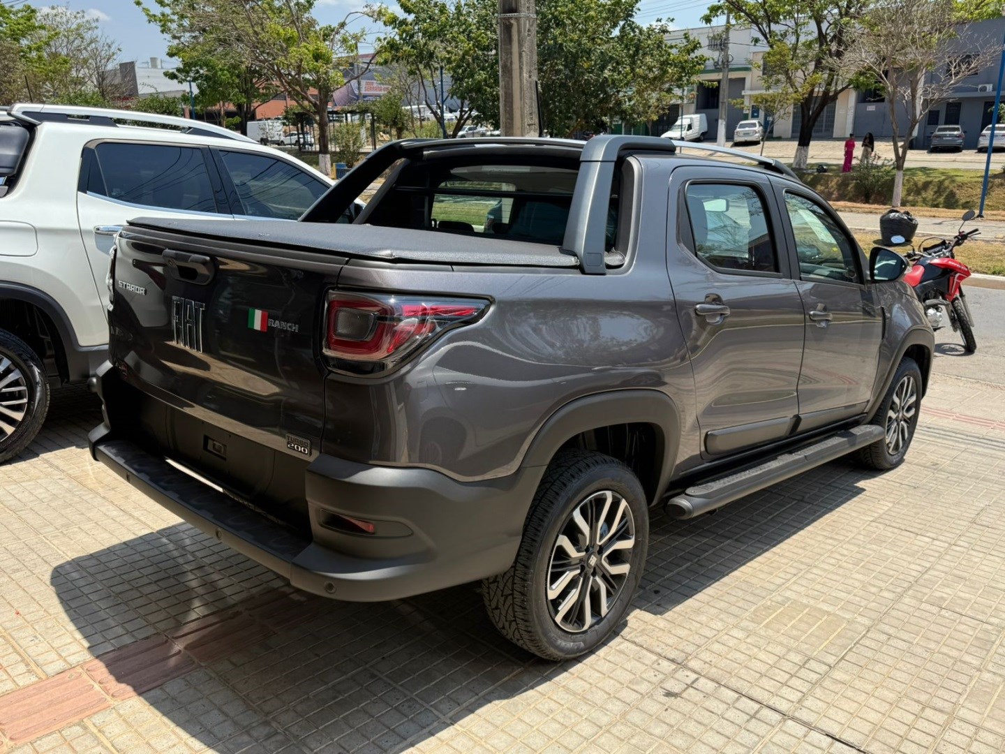 Fiat Strada Ranch 2026 0km pronta entrega, já emplacada, bancos em couro, multimidia com car play, ar condicionado digital, rodas de liga leve, faróis em led