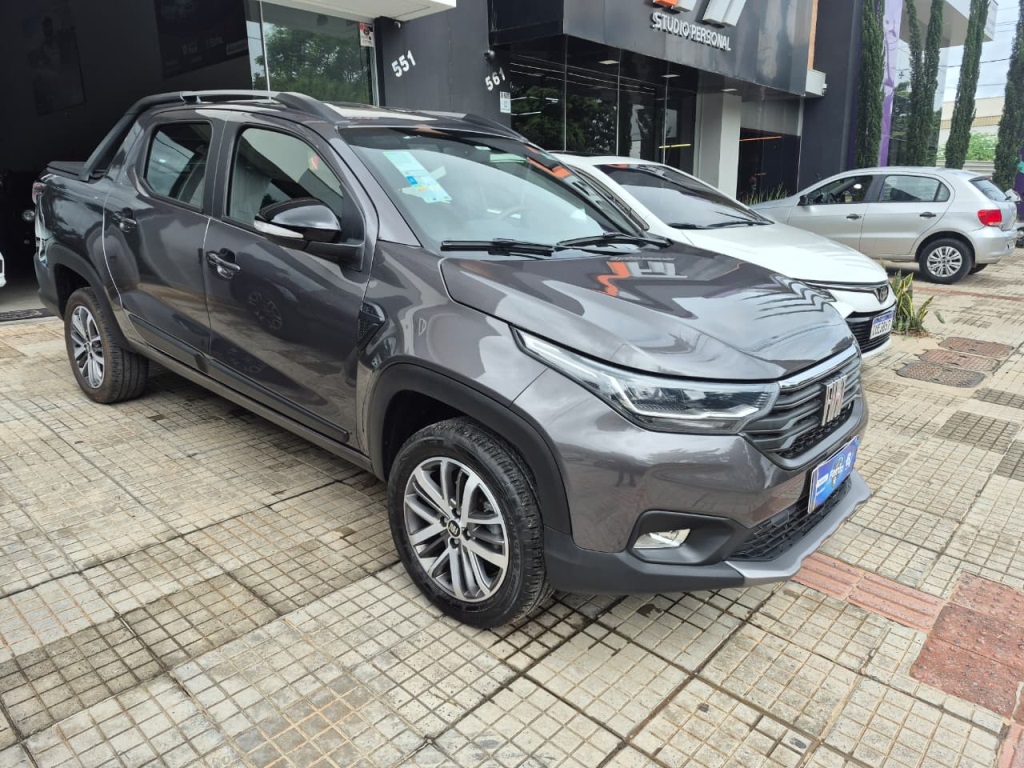 Fiat Strada Volcano 1.3 automática 2025 com apenas 5600 km rodados, ar condicionado digital, volante multifuncional, multimidia com car Play, camera de ré, carregador de celular por indução, chave canivete com alarme, sensor de ré, rodas de liga leve, retrovisores elétrico, farois em led, carro sem detalhes